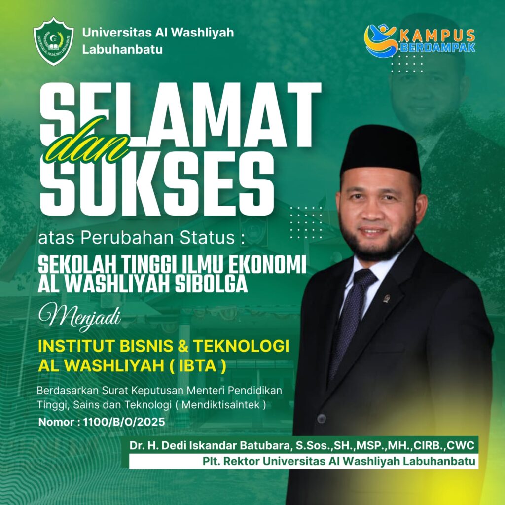 Selamat dan Sukses Atas Perubahan Status Sekolah Tinggi Ilmu Ekonomi Al Washliyah Sibolga menjadi Institut Bisnis dan Teknologi Al Washliyah (IBTA)